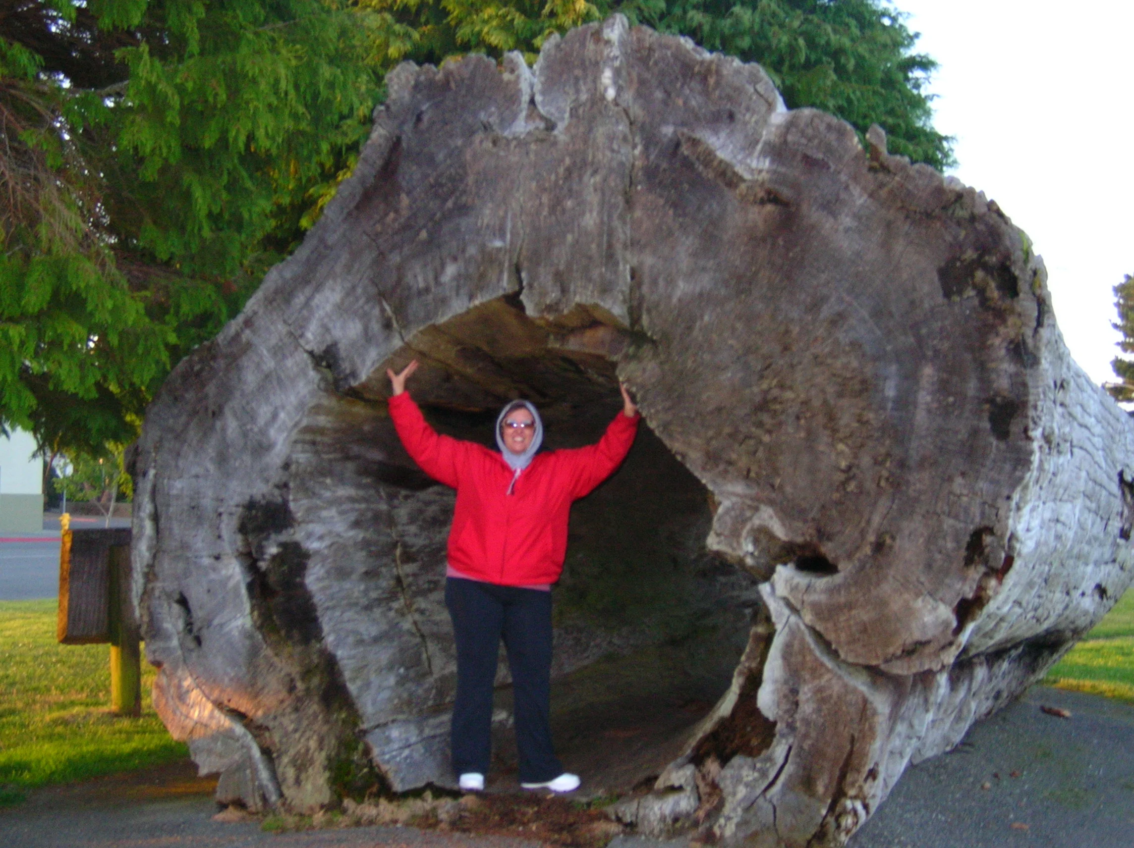 We went into town for dinner and found this incredible playground and this tree trunk was plopped right in the middle of the park. The giant sequoia tree fell down over 50 years ago. They moved a section of it into the main city park of Crescent City, California. We had never seen nor climbed around a tree trunk this large. WOW! No one told us to go there, most people have never heard of Crescent City, California. We still talk about this park and this tree over eight years later. We simply found it on our own because we our eyes were open.