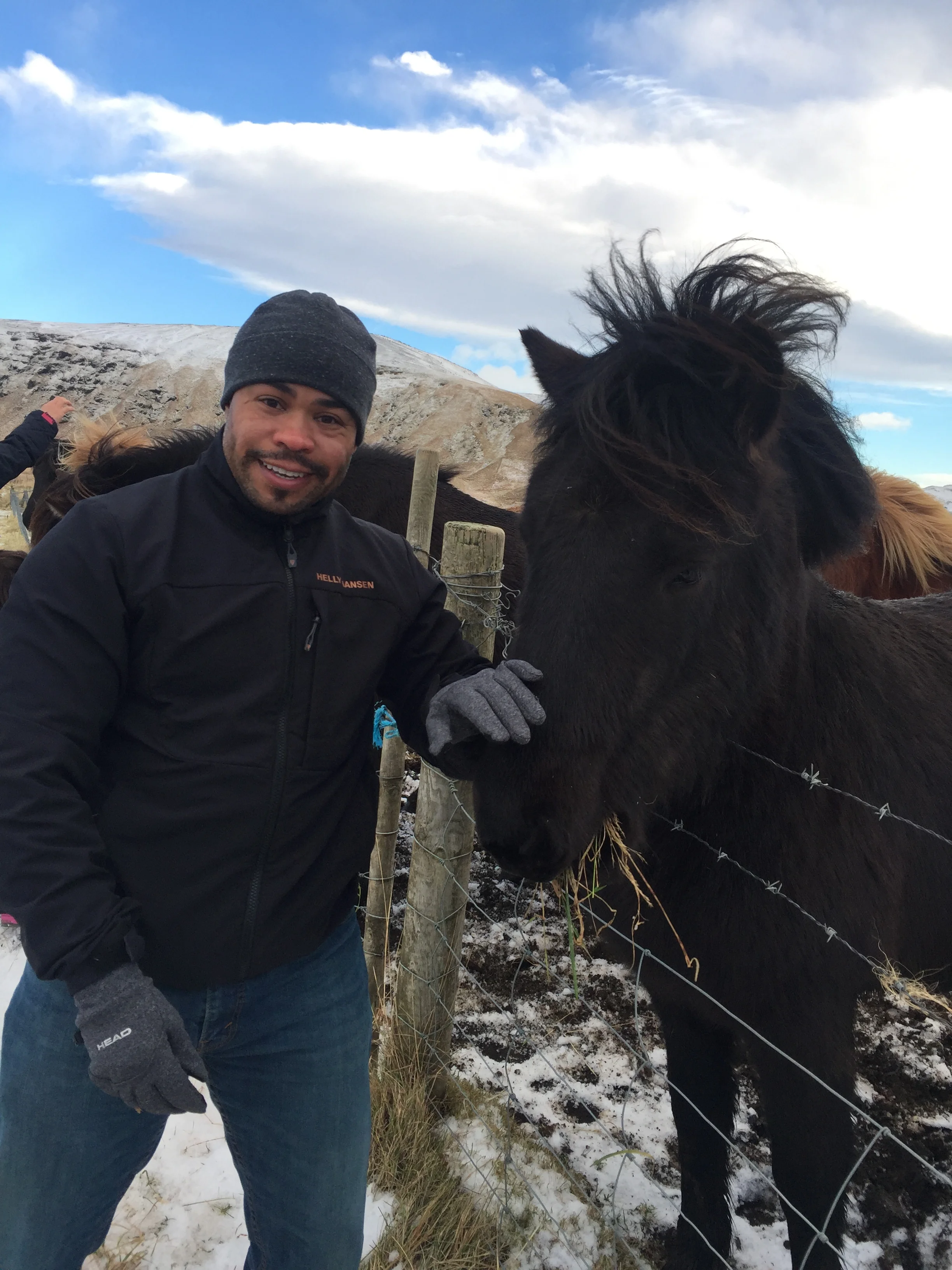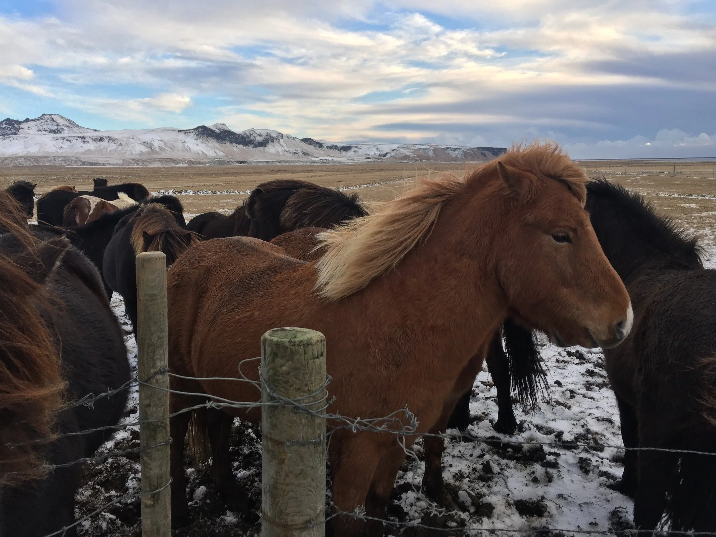 Shel making friends with the local population. Icelandic horses were brought to the island by the Vikings 1000 years ago.